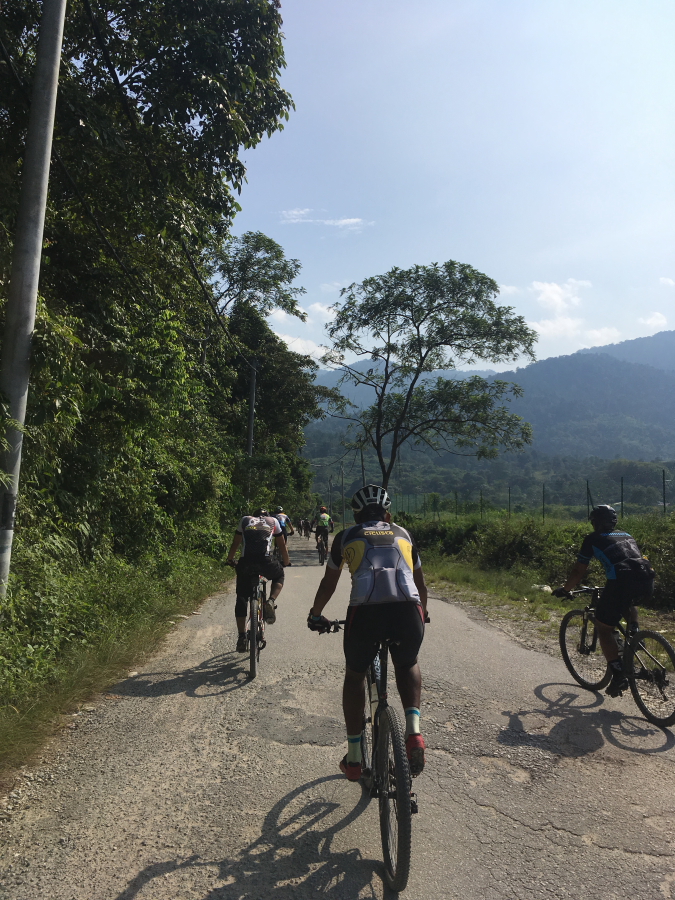 Sun18; malam tadi set dgan zul, nk joint geng semenyih.. ride area sana.. pagi ni, pkul8 dia sampai.. loadbasikal atas carnival dia.. kami gerak p ambik abg milly lak.. terus ke hiway langat-batu18-bukithantu-takung kt masjidjamek kg.pasir baru. ada dua group.. kami sarap dulu..  pkul9 briefing by tuan kamarul.. pkul915 on--on.. pedal tarmex.. simpang tmn semenyih impian.. masuk laluan dalam area kilang-sawit-kolamikan.. singgah aslifarmresort.. mula climbing panjat atas tample keras gak kaki duk tekan.. kt simpang jumpa group yg lagi satu.. depa baru nk turun.. kami naik lagi.. takefive.. ada rider.. cicir meter.. tunggu.. area sini banyak simpang.. downhill kawasan berbatu.. hampir pukul12 baru jumpa tarmex.. masuk kanan.. menghala camp alang.. sampai.. kasi ilangkan penat.. pagi tadi dah kolek duit rm15 sorang.. depa dah set, utk lunch sini.. makan dulu.. masakan memang best.. ada yang sesambil berendam.. selesai semua.. pkul1, aku cheli abgmilly dan zul gerak dulu sebab cheli kena kerja dlm pkul3.. laluan balik aku dh tau.. pedal je.. dan sampai kt masjid pkul130.. sesiap.. chow p singgah kena cendol kt kosas.. kemudian hantar abg milly balik..