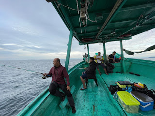 3hb, botman tuka spot.. area sini laie kurang soton dah.. kebanyakan geng semua dah tumbang.. aku sedar pun pkul5pagi nk buang air.. sambung baring.. hamok aku ni berbuai kuat.. rasa nk tercampak.. xleh tido sampai subuh.. pkul6 bot tuka spot, kata port cari ikan.. depa pakai appollo dan jig, ada yg pakai isi sotong atau ikan.. aku layan ambik gambo udah lah.. pkul8 kami gerak balik.. sejam sampai kat parking keta.. sesiap dan loading set pancing dlm keta.. otw tu tapow lunch.. kemudian terus ke homestay.. lepak kejap.. nk ilangkan pening darat ni.. kasi kemas apa yg patut.. p mandi dan bersiap.. bahagi hasil tangkapan.. pkul2 gerak dah.. singgah temerloh.. otw balik jem teruk.. ajoi bawak ke bentong-masuk jln lama gentingsepah.. banyak lak kereta.. pkul6 sampai gombak.. mie dodol turun dulu.. lepas tu sampai bank pkul630.. daus hantar aku balik umah.. letih kow..